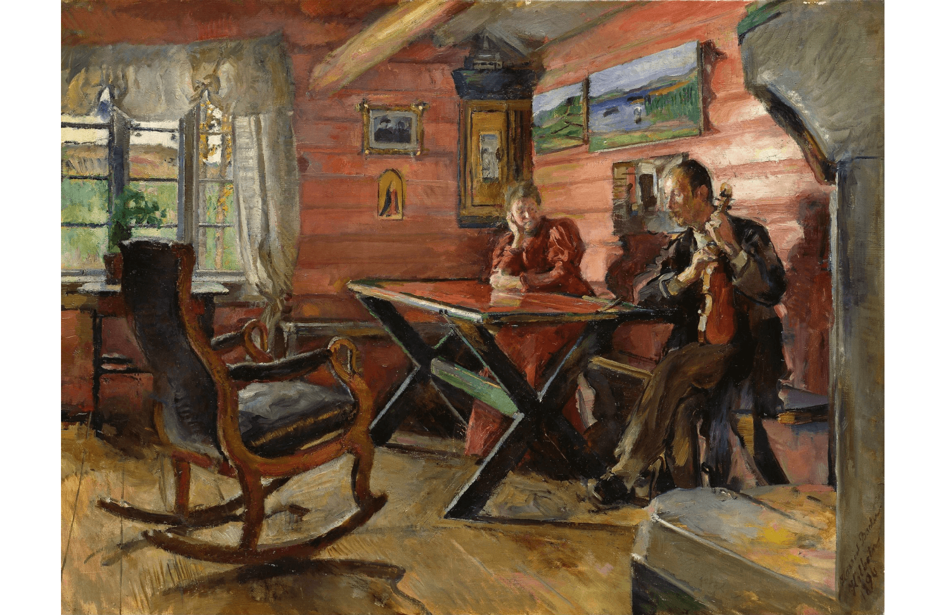 Måleriet av Arne og Hulda Garborg er av Harriet Backer. Foto: Nasjonalmuseet/Børre Høstland